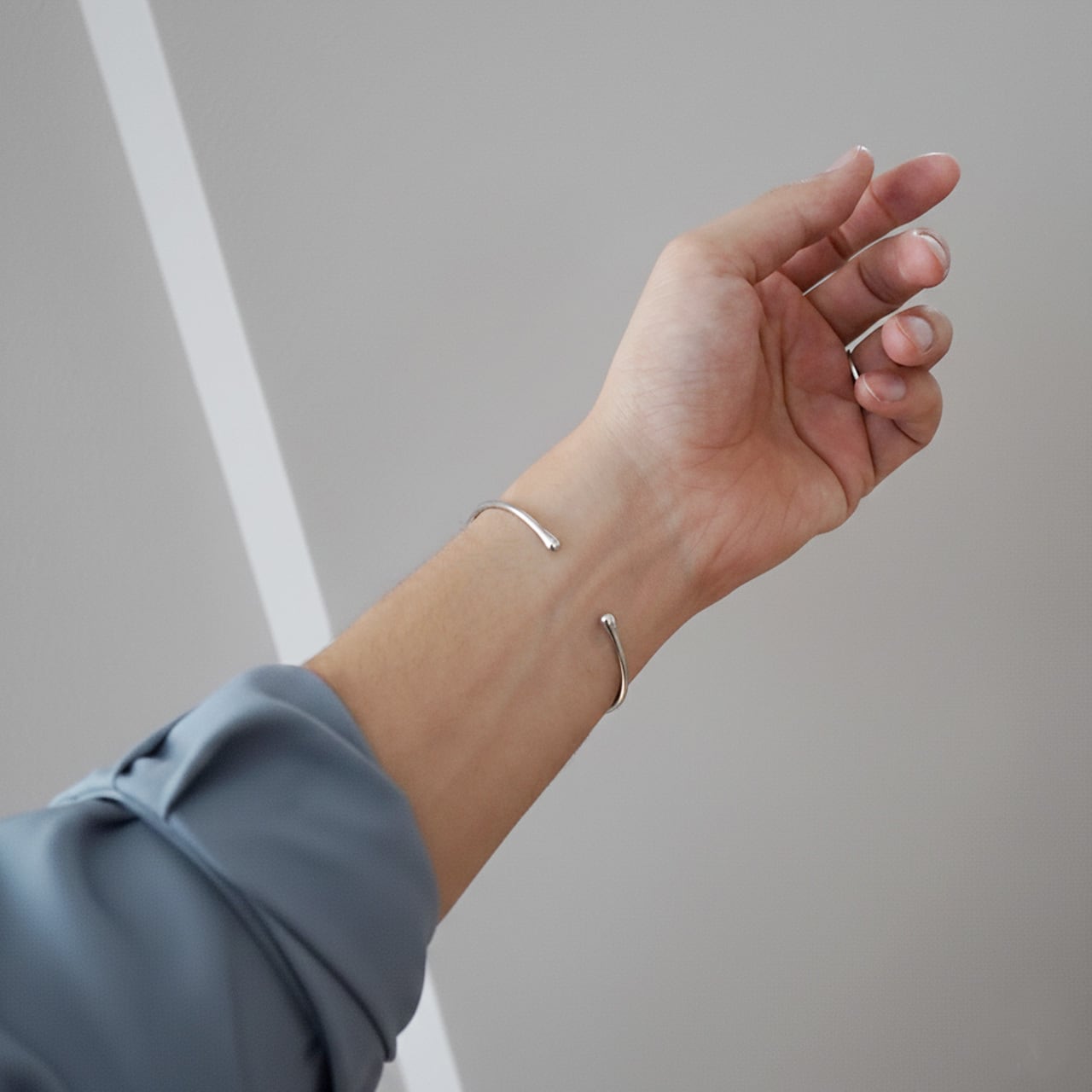 主張しすぎず、それでいて手元に品格を添えるシルバーバングルです。